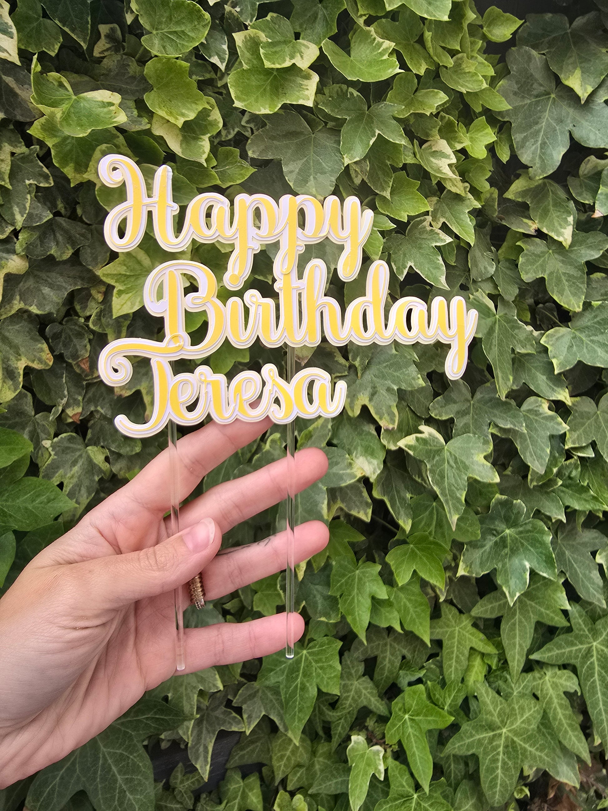 Simple cake topper with any name in any colours in 3d style, made of higher quality card stock, designed by me with extra gloss ellements to make the image more stand out.Ā
