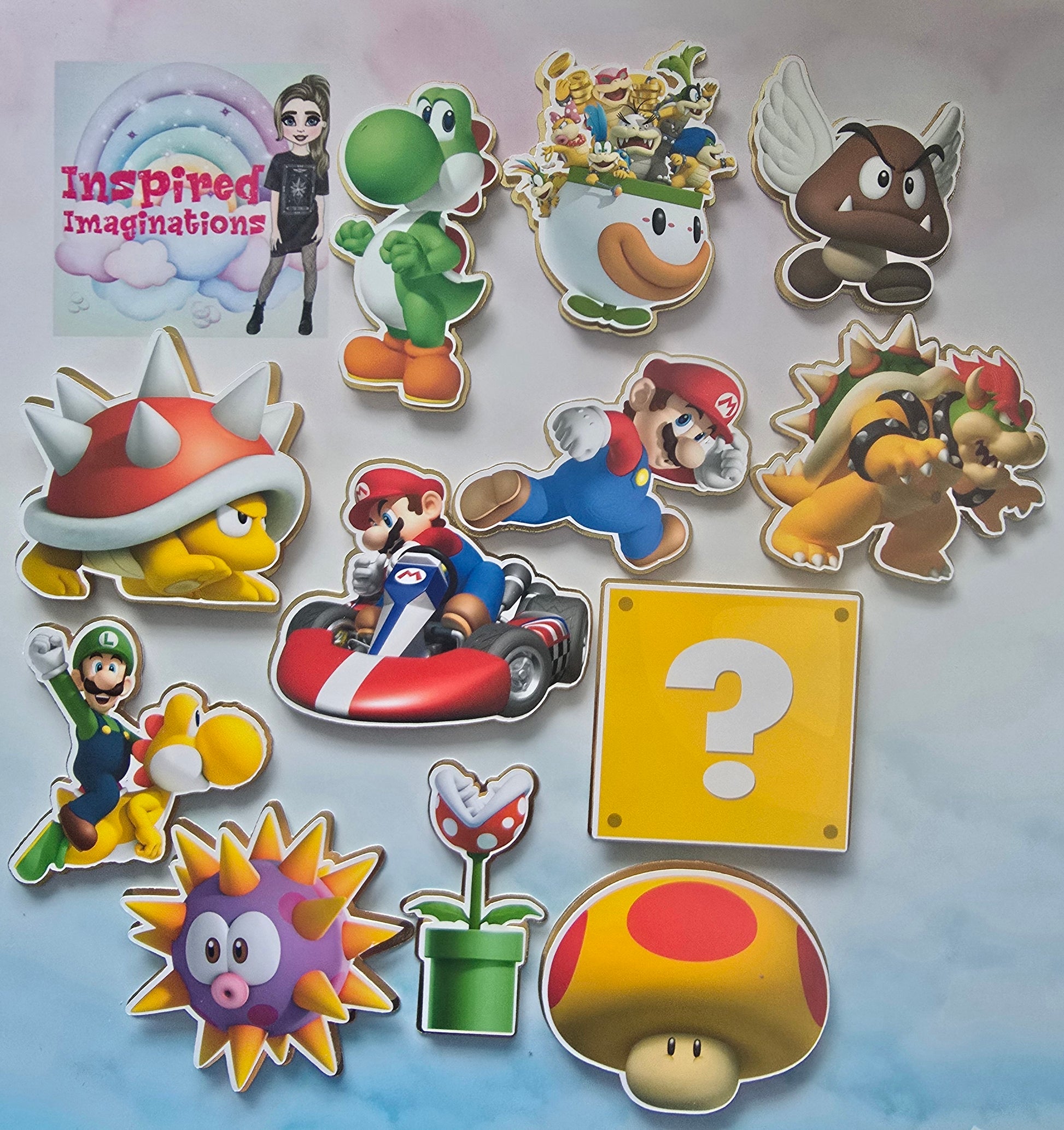 * NOTE * If you need Extra single pieces of smaller Cake toppers or Cupcake Toppers ( with or without sticks ) these can be added to your order or sold without the main large topper . Please message me for more information and prices ( Social Media: @InspiredImaginations, Email: inspiredimaginationsuk@gmail.com)